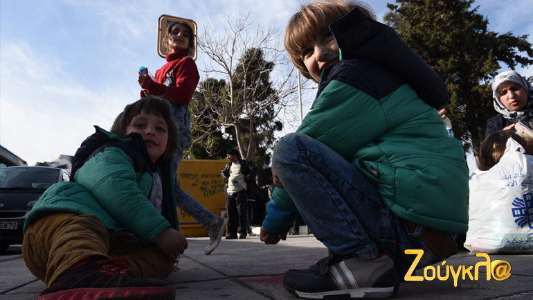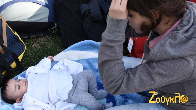Γυναίκες, άνδρες και παιδιά κάθισαν στα πεζοδρόμια, περιμένοντας κάποια ανακοίνωση για τα επόμενα δρομολόγια των λεωφορείων ή την οριστική μεταφορά τους στο κέντρο μετεγκατάστασης στο Σχιστό.