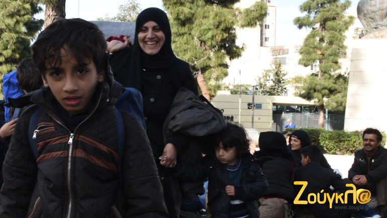 Πρόχειρο καταφύγιο σε μία πλατεία του Πειραιά βρήκαν εκατοντάδες πρόσφυγες, μεταξύ αυτών και γυναικόπαιδα, καθώς δεν υπάρχει επαρκής χώρος φιλοξενίας.
