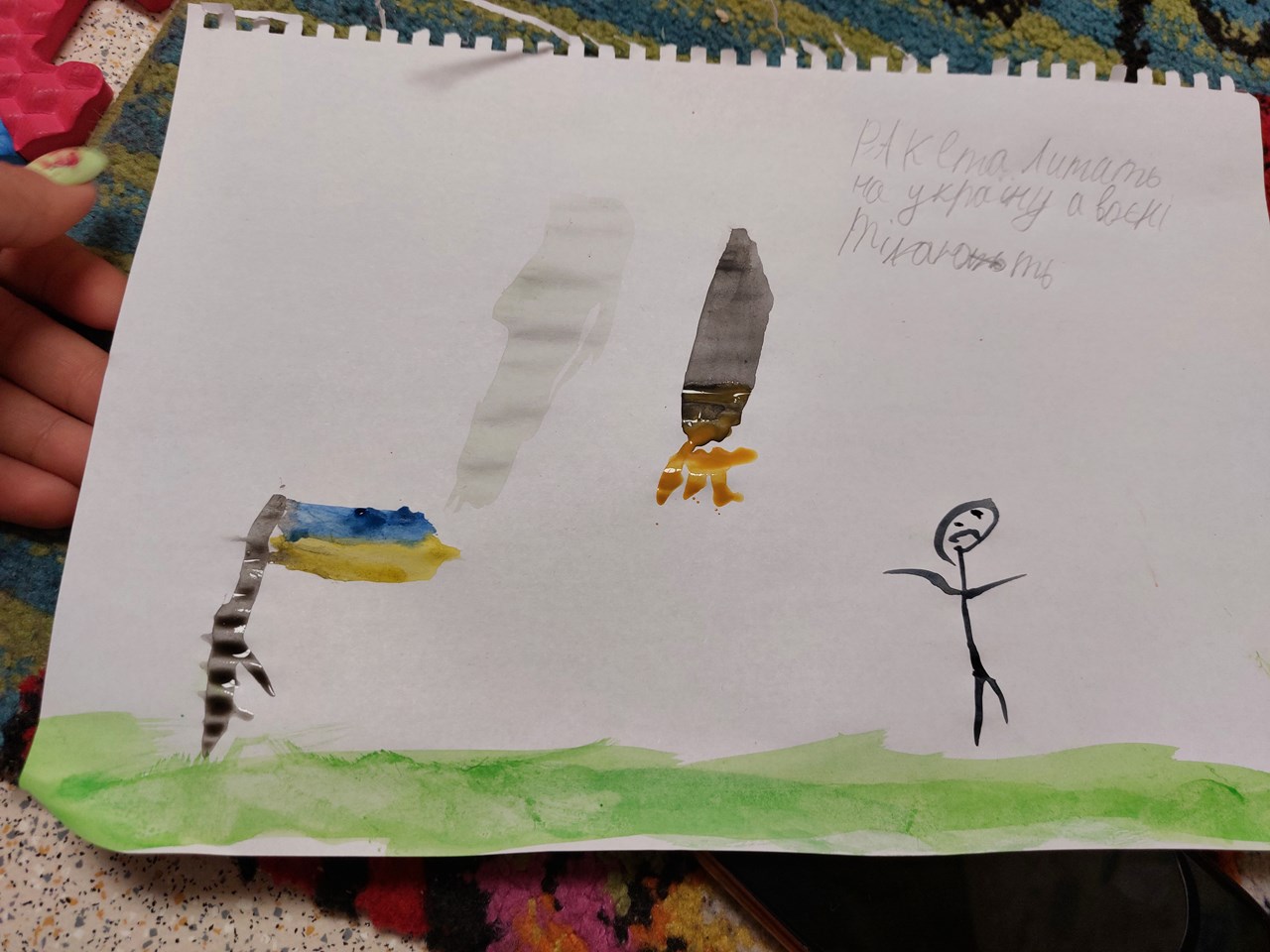 Βόμβες που εκρήγνυνται, δάση παραδομένα στις φλόγες, άνθρωποι που κρατούν όπλα. Μικρά προσφυγόπουλα από την Ουκρανία, που έχουν έρθει τις τελευταίες ημέρες στην Ελλάδα, ζωγραφίζουν με τα πιο μελανά χρώματα τα όσα βίωσαν στην πατρίδα τους.