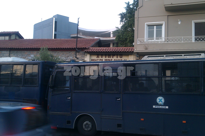 (Η αστυνομία έχει τοποθετήσει από νωρίς κλούβες έξω από την είσοδο του θεάτρου- ώρα 18.00)