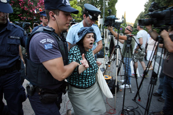 Έτσι και απόψε η Ελένη Λουκά, επισκέφθηκε το Μαξίμου και φώναζε προς το εσωτερικό του όπου συνεδριάζουν οι τρεις κυβερνητικοί εταίροι «Αντίχριστοι».