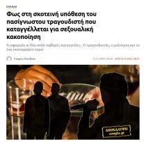 Ραγδαίες είναι οι εξελίξεις στη θλιβερότατη υπόθεση των καταγγελιών για σεξουαλική κακοποίηση και βιασμό, ενός τραγουδιστή και ενός μαέστρου, κατά πασίγνωστου καλλιτέχνη ο οποίος εμφανίζεται και σε τηλεοπτικές εκπομπές.