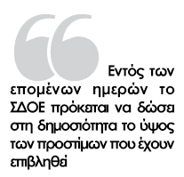 Στελέχη του Σώματος Δίωξης Οικονομικού Εγκλήματος, μιλώντας στην ηλεκτρονική μας εφημερίδα, ανέφεραν ότι εντός των επομένων ημερών το ΣΔΟΕ πρόκειται να δώσει στη δημοσιότητα το ύψος των προστίμων που έχουν επιβληθεί αλλά και (σε περίπτωση που υπάρξει σχετική έγκριση) τα ονόματα των ελεγχομένων.