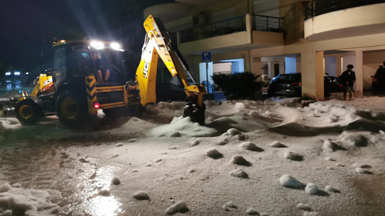 Πρωτοφανής χαλαζόπτωση έπληξε χθες το βράδυ την πόλη της Δράμας, με αποτέλεσμα να προκληθούν εκτεταμένα προβλήματα σε πολλές γειτονιές. Ήταν τόσος ο όγκος της χαλαζόπτωσης που σε ορισμένους δρόμους σχηματίστηκε ένα πυκνό στρώμα που έφτασε μέχρι και τα 30-40 εκατοστά, ενώ χρειάστηκαν εκσκαπτικά μηχανήματα προκειμένου να το απομακρύνουν και να ανοίξουν οι δρόμοι.