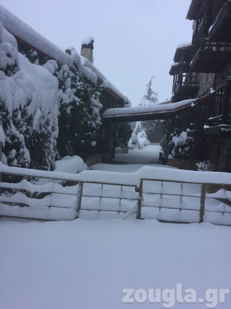 Πιο συγκεκριμένα, τόσο στο χωριό όσο και στις γύρω περιοχές, σημειώνεται έντονη χιονόπτωση και μάλιστα, όπως ανέφερε στο zougla.gr ο ιδιοκτήτης ξενοδοχείου της περιοχής, Κώστας Κέκης το ύψος του χιονιού ξεπερνά το μισό μέτρο.