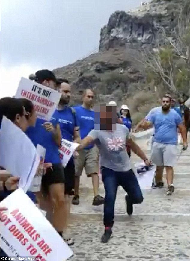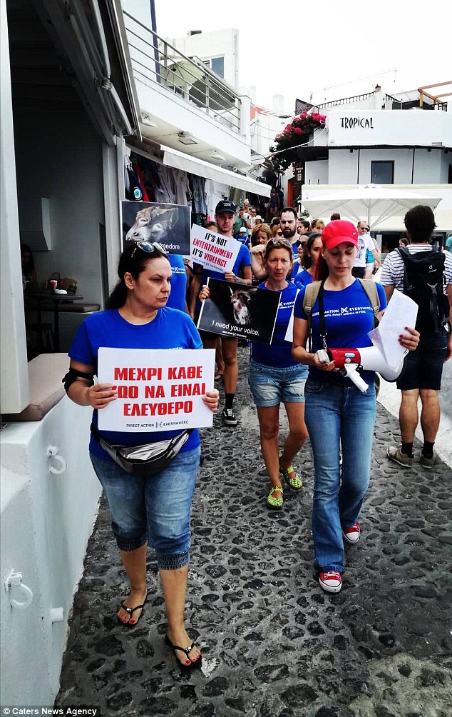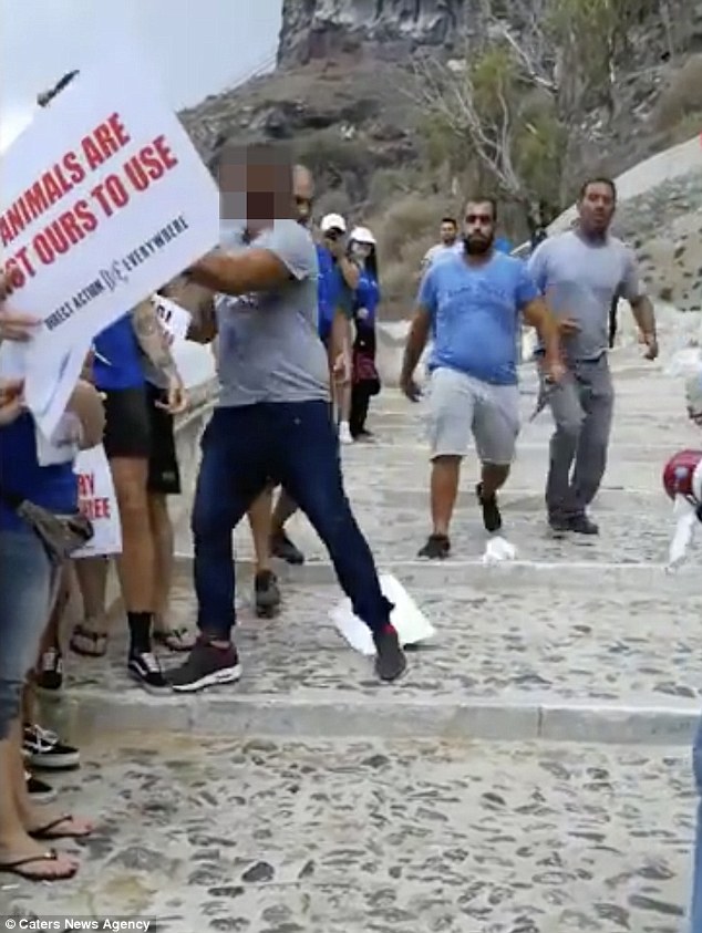 Συγκεκριμένα, μέλη του ελληνικού τμήματος της Direct Action Everywhere είχαν μόλις ξεκινήσει την ειρηνική τους διαμαρτυρία στα Φηρά, όταν δέχθηκαν επίθεση από 30 περίπου οργισμένους αγωγιάτες που τους κλότσησαν, τους χτύπησαν και τους έφτυσαν, σύμφωνα με τη Daily Mail .