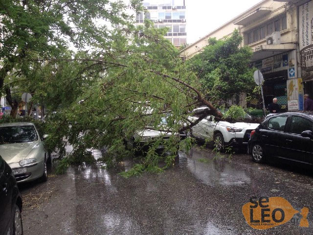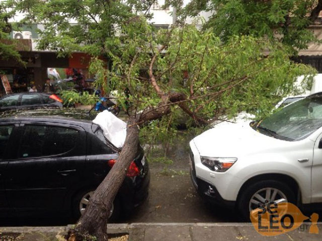 Υλικές ζημιές σε σταθμευμένο Ι.Χ. προκάλεσε δέντρο, το οποίο εκριζώθηκε λόγω των θυελλωδών ανέμων στη Θεσσαλονίκη.