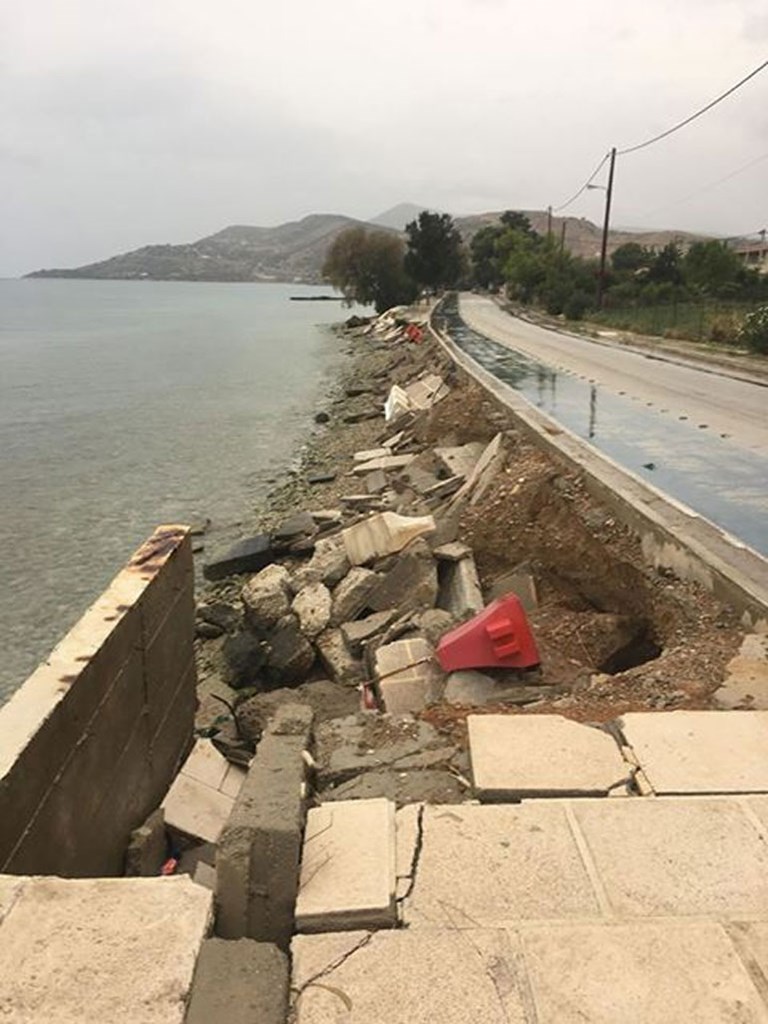 Εικόνες από τον παραλιακό δρόμο που έχει πλημμυρίσει: