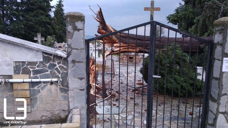 Περίπου μια ώρα κράτησαν η βροχή και οι θυελλώδεις άνεμοι. Τα φαινόμενα ήταν πολύ έντονα με αποτέλεσμα να ξεριζωθούν δέντρα από τις ριπές του ανέμου. Μάλιστα, ένα μεγάλο κυπαρίσσι έπεσε στο νεκροταφείο του χωριού προκαλώντας μεγάλες ζημιές. Παράλληλα, έπεσαν και κολώνες της ΔΕΗ με την περιοχή να μένει χωρίς ρεύμα.