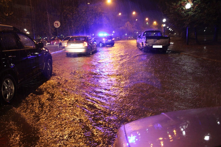 Δρόμοι μετατράπηκαν σε ποτάμια στην Ηγουμενίτσα από τα έντονα καιρικά φαινόμενα που έπληξαν την περιοχή.