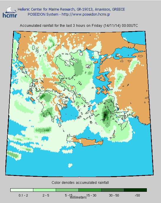 Δείτε τις βροχοπτώσεις στη χώρα τις βραδινές ώρες της Πέμπτης όπως τις μετέδωσε το Ελληνικό Κέντρο Θαλάσσιων Ερευνών «Ποσειδών»