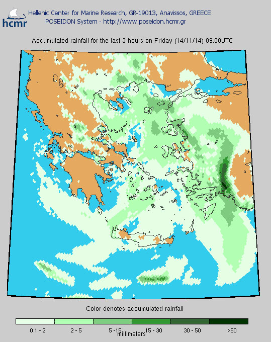 Δείτε τις βροχοπτώσεις στη χώρα το πρωί και το μεσημέρι της Παρασκευής όπως τις μεταδίδει το Ελληνικό Κέντρο Θαλάσσιων Ερευνών «Ποσειδών»
