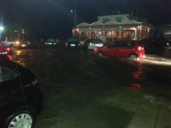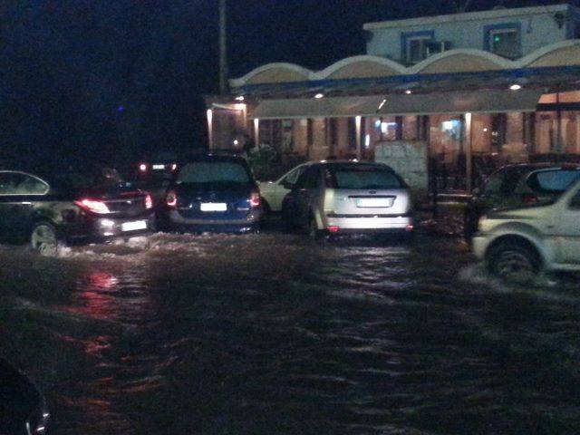 Σφοδρή ήταν η καταιγίδα που έπληξε το Αργοστόλι και άλλες περιοχές της Κεφαλλονιάς το απόγευμα της Πέμπτης. Ο παραλιακός δρόμος Αργοστολίου πλημμύρισε, δημιουργώντας προβλήματα στην κυκλοφορία των οχημάτων και στα μαγαζιά.