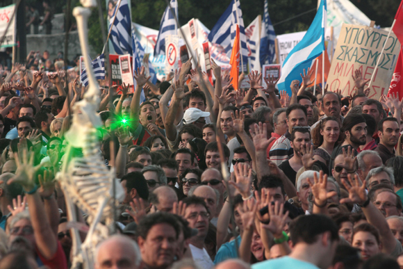 Δεν άνοιξε μύτη την Κυριακή το βράδυ στο κέντρο της Αθήνας. Μισό εκατομμύριο κόσμου, με παλμό, ρυθμό, διοχέτευσε την απόγνωση και την απελπισία του σε ένα ηχηρό «Φτάνει πια!».