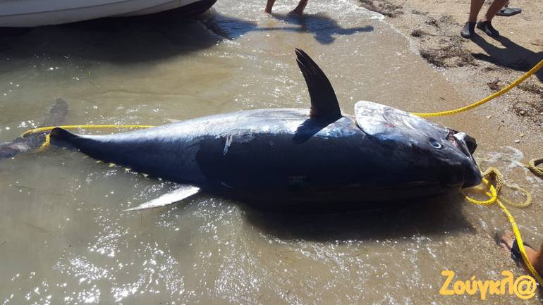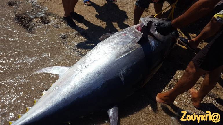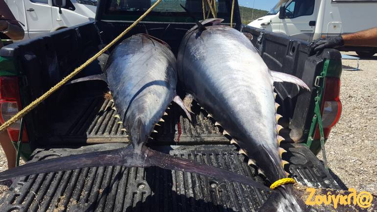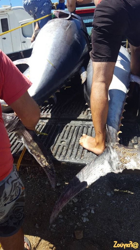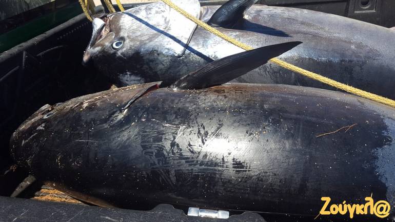 Τρεις τόνους, πάνω από 200 κιλά ο καθένας, κατάφεραν και έπιασαν ψαράδες στο Γαλαξίδι. Η κάμερα του zougla.gr βρέθηκε στην περιοχή και κατέγραψε την ώρα που οι ψαράδες προσπαθούσαν να ξεφορτώσουν την ψαριά.