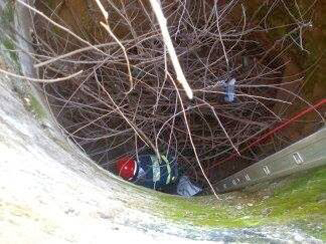 Με σκάλα, κατέβηκαν αρκετά μέτρα και βρήκαν το τετράποδο. Ένας από τους δύο εθελοντές, το αγκάλιασε και το ανέβασε στο χωράφι όπου το απελευθέρωσε.