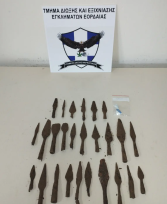 Κατόπιν παραγγελίας για κατ’ οίκον έρευνα, αστυνομικοί του Τμήματος Δίωξης και Εξιχνίασης Εγκλημάτων Εορδαίας πραγματοποίησαν έρευνα στην οικία του στην Πτολεμαΐδα, όπου εντοπίστηκαν και κατασχέθηκαν 26 λόγχες ελληνιστικής εποχής ιδιαίτερης αρχαιολογικής αξίας.