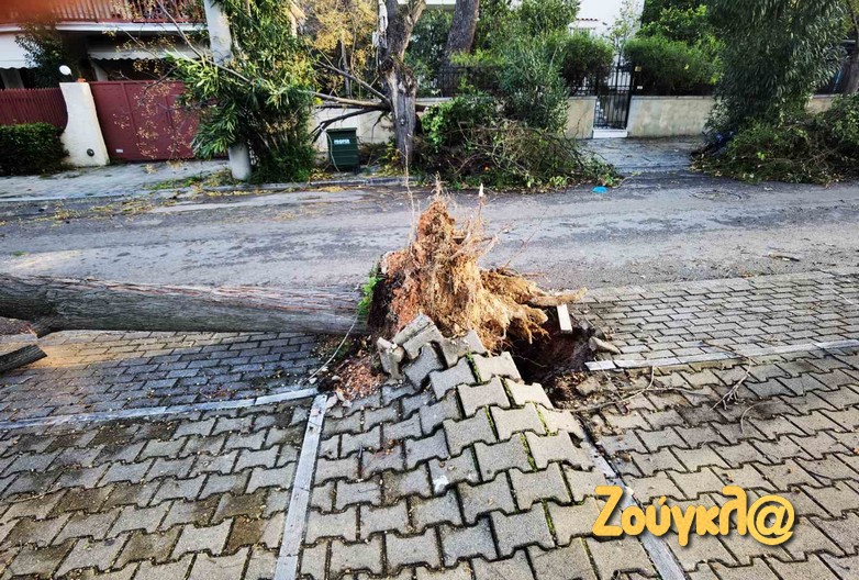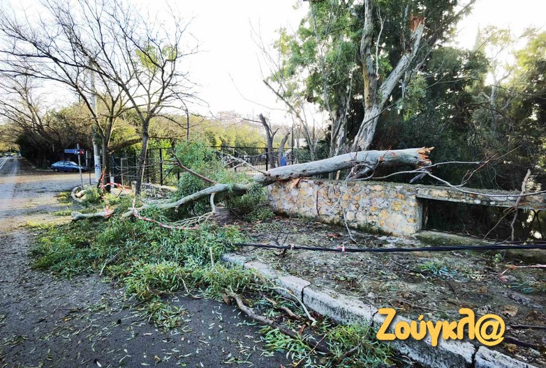 Επίσης, από τις πτώσεις των δέντρων έχουν προκληθεί ζημιές και σε μάντρες σπιτιών και σταθμευμένα αυτοκίνητα.