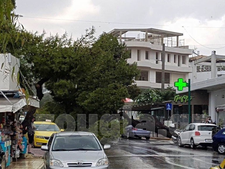Ένα μεγάλο δένδρο έπεσε έξω από το Ασκληπιείο της Βούλας με αποτέλεσμα να διακοπεί η κυκλοφορία.