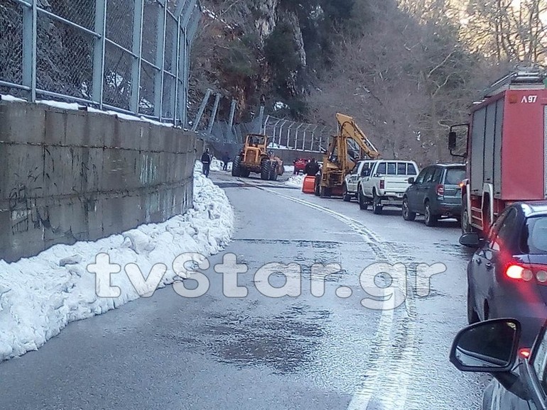 Η κυκλοφορία διεκόπη για μία ώρα μέχρι τα μηχανήματα της Περιφέρειας να καθαρίσουν το οδόστρωμα, ενώ στο σημείο έφταση η Πυροσβεστική και η Αστυνομία.