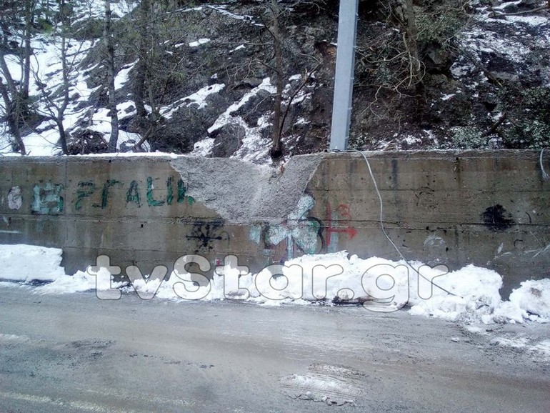 Από θαύμα δεν υπήρξαν θύματα σε ένα σημείο που φημίζεται για τις καταπτώσεις και γι’ αυτό υπάρχει ενισχημένο προστατευτικό πλέγμα.