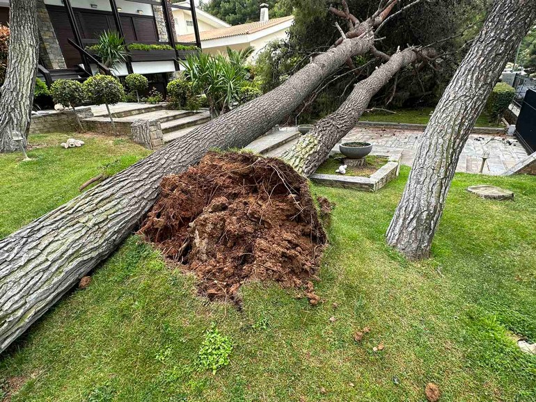 Δύο τεράστια πεύκα μέσα σε κατοικημένη περιοχή του Δήμου Κηφισιάς έπεσαν το πρωί χωρίς ευτυχώς να υπάρξουν θύματα.