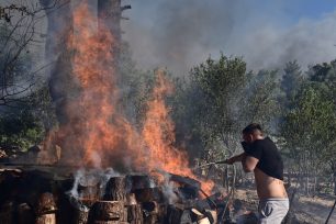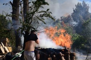 Την ώρα που μεγάλο μέτωπο καίει κοντά στον οικισμό, οι σπίθες που ξεπετάγονταν είχαν ως αποτέλεσμα να πάρουν φωτιά τα καυσόξυλα που είχαν συγκεντρώσει στις αυλές τους κάτοικοι τη περιοχής, εντείνοντας τον κίνδυνο να επεκταθεί η φωτιά στην κατοικημένη περιοχή.