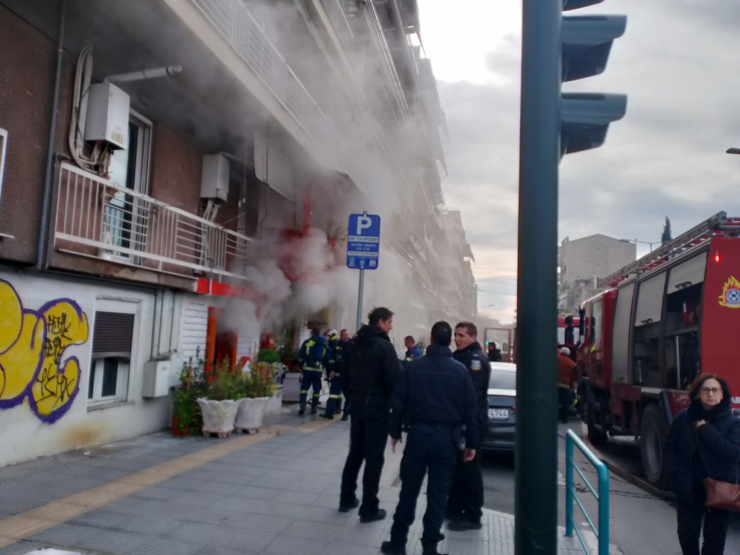 Σύμφωνα με την πρώτη εικόνα, πυκνοί καπνοί βγαίνουν από τους χώρους γραφείου που βρίσκεται σε οικοδομή στη συμβολή των οδών Ανθ. Γαζή και Ηπείρου.