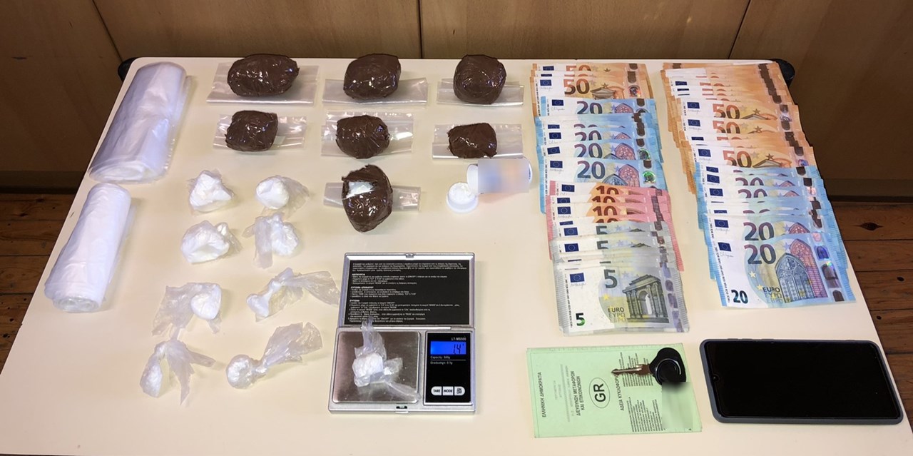 Παράλληλα, βρήκαν και κατάσχεσαν 1.965 ευρώ σε μετρητά, μία ζυγαριά ακριβείας, ένα κινητό τηλέφωνο αλλά και ένα φαρμακευτικό σκεύασμα που προορίζεται για νόθευση κοκαΐνης.
