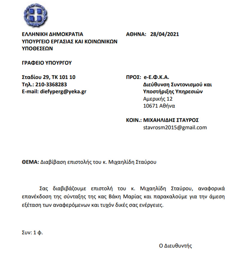 Χαρακτηριστικό είναι ότι ο Σταύρος Μιχαηλίδης απευθύνθηκε στον αρμόδιο υπουργό Εργασίας, ο οποίος ασχολήθηκε με το ζήτημα και έδωσε εντολή στον ΕΦΚΑ να πράξει τα… δέοντα. Οι αρμόδιοι της υπηρεσίας όμως φαίνεται ότι για κάποιον απίστευτο λόγο αγνοούν όχι μόνο τις δικαστικές αποφάσεις, αλλά και την εντολή του υπουργού!