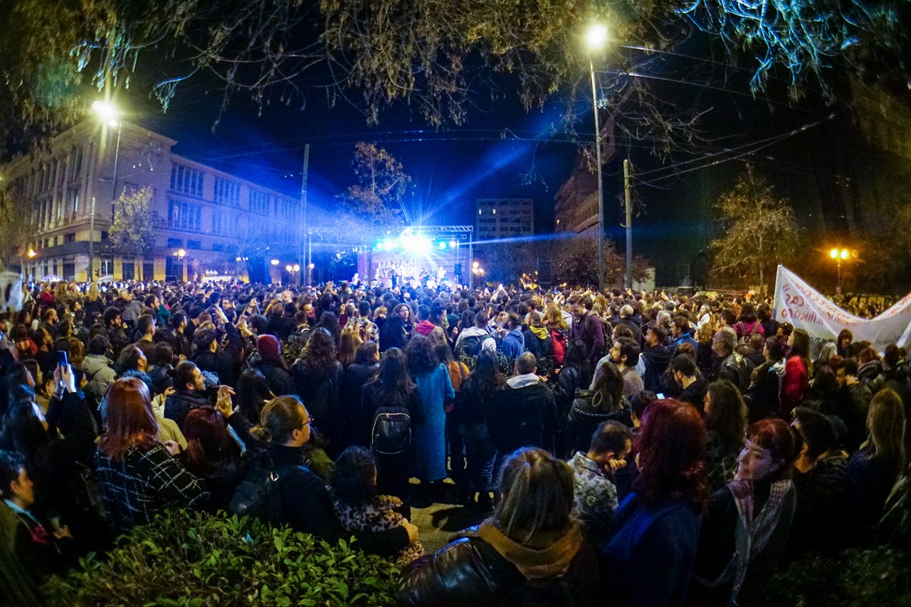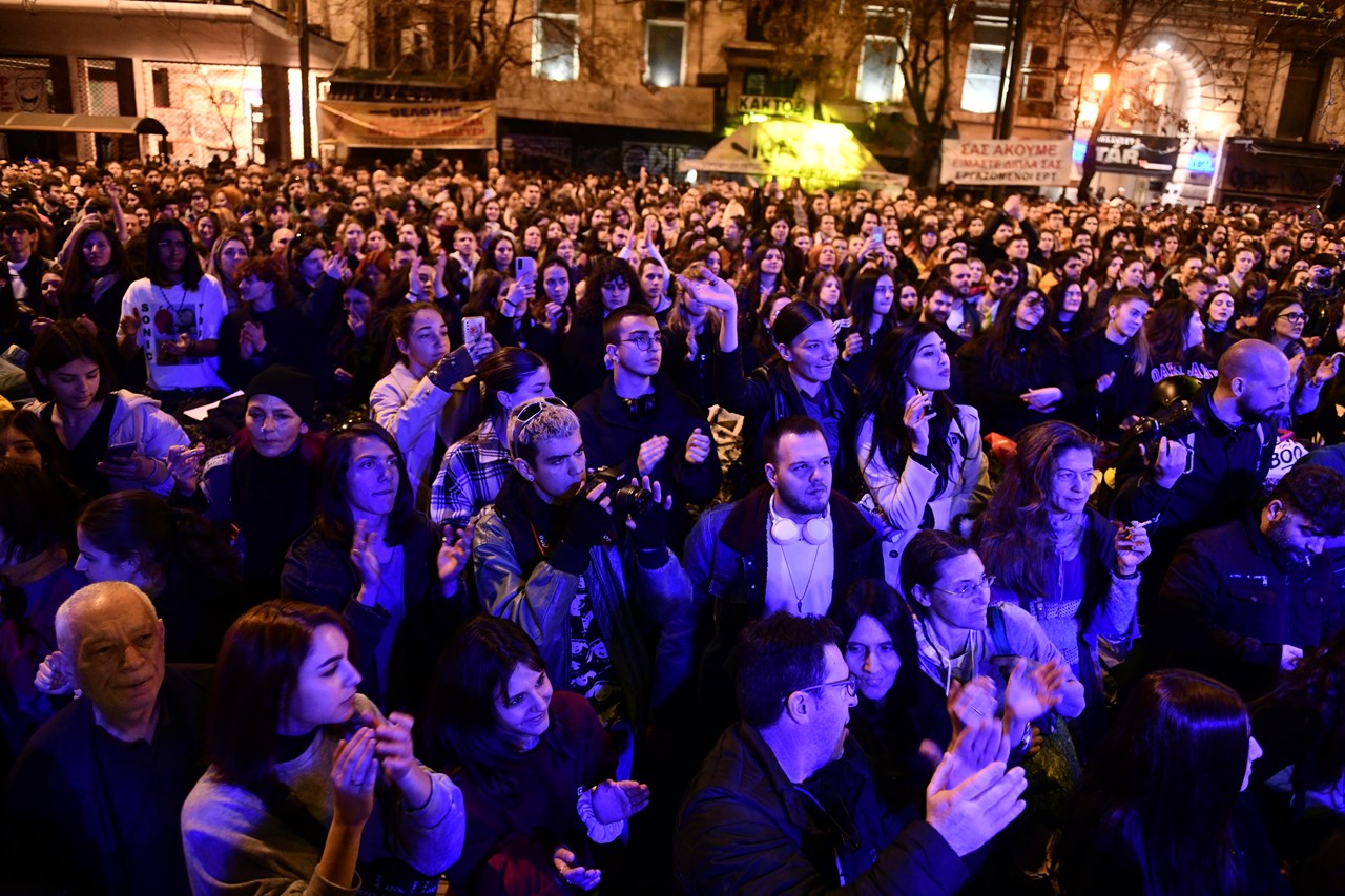 Σε εξέλιξη βρίσκεται συναυλία που διοργανώνουν ο Πανελλήνιος Μουσικός Σύλλογος (ΠΜΣ) και το Πανελλήνιο Σωματείο Ελλήνων Τραγουδιστών (ΠΣΕΤ), έξω από το θέατρο ΡΕΞ στην Πανεπιστημίου.