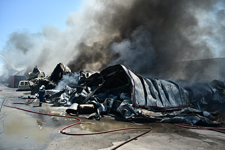 Η φωτιά εξαπλώθηκε γρήγορα λόγω των εύφλεκτων υλικών που βρίσκονταν στον χώρο, ενώ οι φλόγες «έγλειψαν» κυριολεκτικά τις εξωτερικές εγκαταστάσεις διπλανού εργοστασίου, που σώθηκε στο «παρά πέντε». Η κινητοποίηση ήταν άμεση και η μάχη με τις φλόγες εξαιρετικά δύσκολη, δεδομένου ότι τοξικοί καπνοί από την καύση πλαστικών κατέκλυσαν την ατμόσφαιρα.
