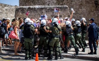 Η συγκέντρωση διαμαρτυρίας που πραγματοποιήθηκε στις 28 Ιουλίου 2025 έξω από το λιμάνι της Ρόδου, με αφορμή τον κατάπλου του ισραηλινού κρουαζιερόπλοιου «Crown Iris», έλαβε βίαιη τροπή και έχει ήδη μετατραπεί σε υπόθεση της Δικαιοσύνης.
