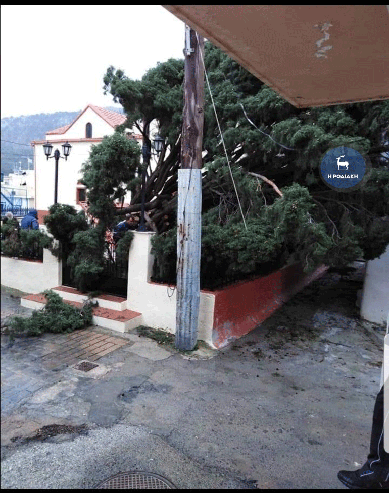 Ένα τεράστιο δέντρο πάνω από 100 ετών εκριζώθηκε εξαιτίας της κακοκαιρίας που πλήττει από χθες τη Ρόδο. Οι θυελλώδεις άνεμοι, κατάφεραν και «τσάκισαν» το τεράστιο κυπαρίσσι, ύψους 25 μέτρων που φυτεύτηκε το 1918 και βρισκόταν έξω από την εκκλησία των Μαριτσών.