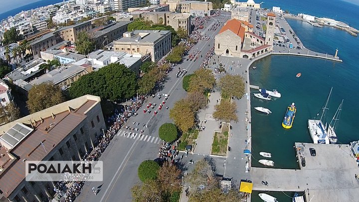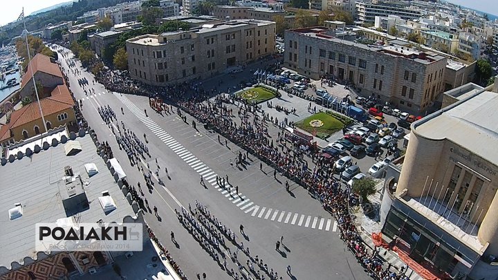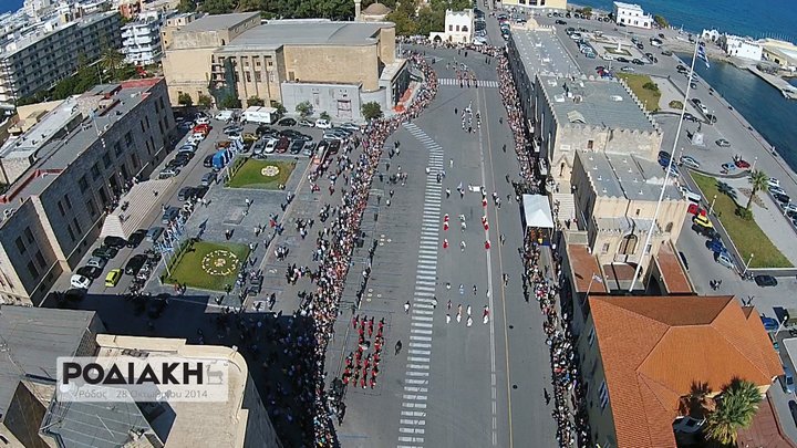 Εντυπωσιακά πλάνα κατέγραψε το ειδικό ελικόπτερο που πέταξε στον ουρανό της Ρόδου, κατά τη διάρκεια της μαθητικής παρέλασης.