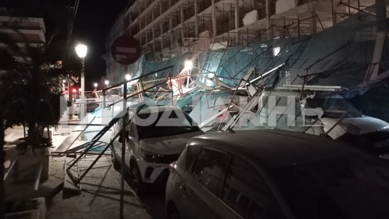 Σοβαρές ζημιές από κατάρρευση σιδερένιων σκαλωσιών προκλήθηκαν πριν από λίγα λεπτά στο κέντρο της πόλης της Ρόδου (οδός Μανδηλαρά), όταν οι ισχυροί άνεμοι που επικρατούν στο νησί παρέσυραν μεγάλο όγκο από σκαλωσιές που υπήρχαν σε υπό ανακαίνιση ξενοδοχειακό συγκρότημα. Οι σκαλωσιές μετακινήθηκαν αρκετά μέτρα και καταπλάκωσαν σταθμευμένα αυτοκίνητα.