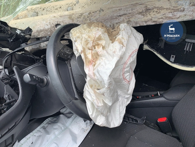 Απο τα συντρίμια του αυτοκινήτου, διερχόμενοι οδηγοί έβγαλαν σε κατάσταση σοκ τη νεαρή οδηγό και ασθενοφόρο του ΕΚΑΒ τη μετέφερε στο νοσοκομείο της Ρόδου για προληπτικούς λόγους.