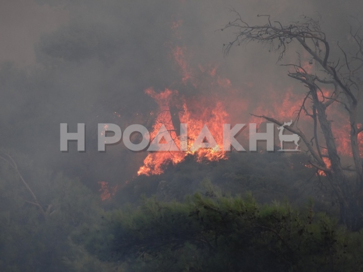 Η φωτιά πήρε μεγάλες διαστάσεις εξαιτίας των δυνατών ανέμων που πνέουν στην περιοχή και παρά την μεγάλη και έγκαιρη κινητοποίηση των δασοπυροσβεστικών δυνάμεων του νησιού, αυτή την ώρα είναι ανεξέλεγκτη.
