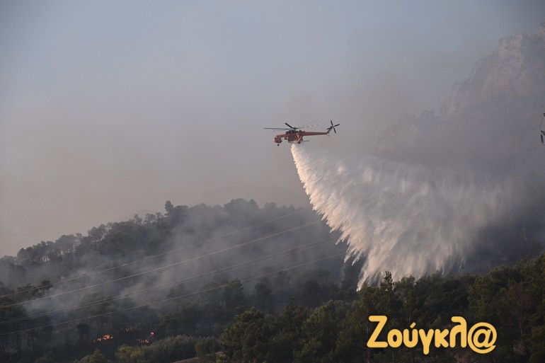 Με το πρώτο φως της ημέρας ξεκίνησαν οι ρήψεις νερού με τα εναέρια μέσα, μεταξύ των οποίων και δύο ελικόπτερα, τα οποία θα συνδράμουν της προσπάθειες και των δύο PZL .