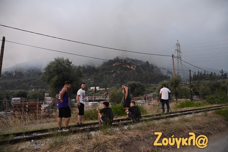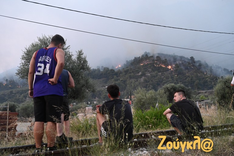 Η φωτιά ξέσπασε χθες το μεσημέρι σε τρία διαφορετικά σημεία και αμέσως πήρε μεγάλες διαστάσεις. Είναι χαρακτηριστικό ότι το συνολικό μέτωπο της πυρκαγιάς ξεπερνά τα επτά χιλιόμετρα.