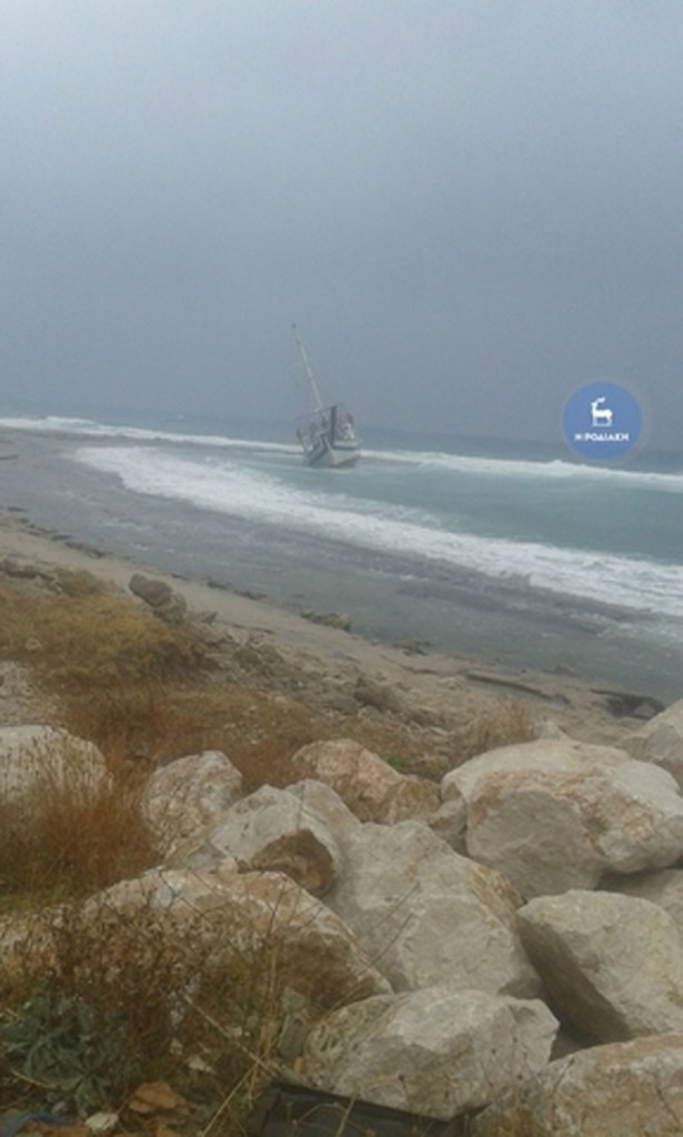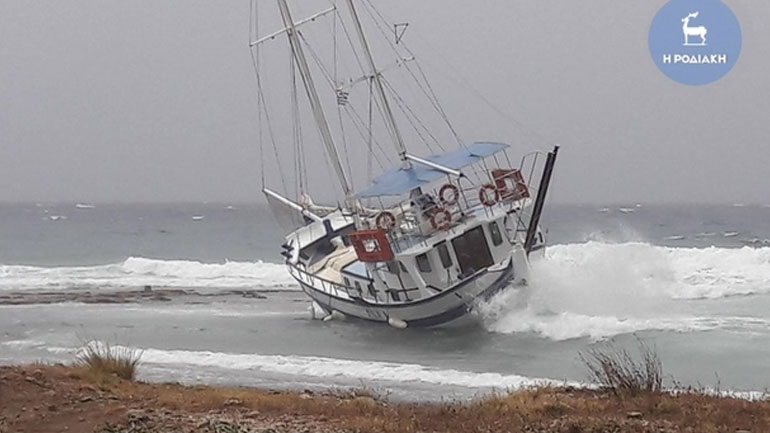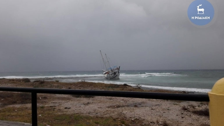 Εκδρομικό σκάφος παρασύρθηκε από την κακοκαιρία στη θαλάσσια περιοχή του Κορακόνερου στη Ρόδο με αποτέλεσμα να βρεθεί στη στεριά.