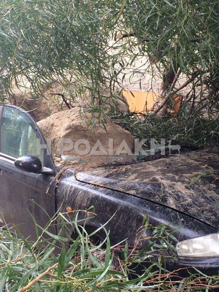 Βγαίνοντας έξω ο ίδιος αλλά και οι γείτονες, διαπίστωσαν ότι στο παλιό Δημοτικό Σχολείο της Λάρδου, το οποίο είναι χτισμένο σε ένα λοφίσκο και ακριβώς πάνω από τα σπίτι τους, σημειώθηκε κατολίσθηση, με αποτέλεσμα μεγάλοι βράχοι να καταπλακώσουν και στην κυριολεξία να διαλύσουν το αυτοκίνητο.