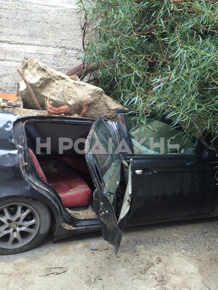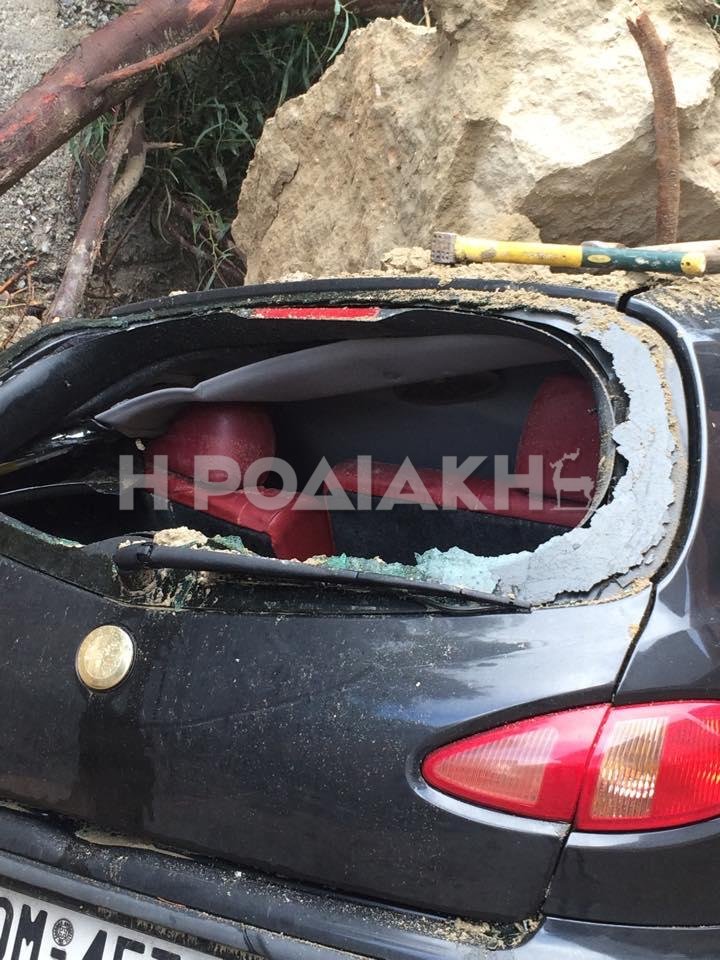 Άγιο είχε ο οδηγός ενός οχήματος και οι συνεπιβάτες του, παραμονή Πρωτοχρονιάς, στην περιοχή Λάρδος της Ρόδου, καθώς, λίγο αφότου βγήκαν από αυτό, καταπλακώθηκε από τεράστιους βράχους.