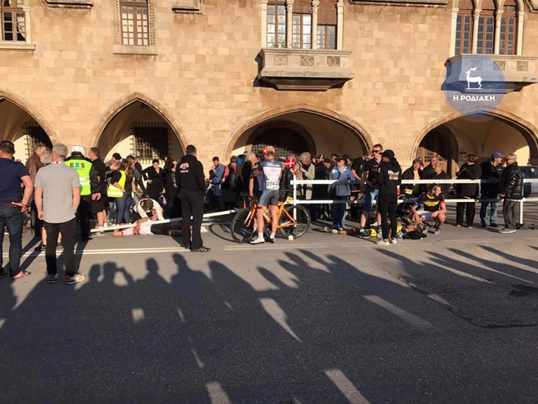 Οι άλλοι τέσσερις ποδηλάτες που διεκομίσθηκαν επίσης στο νοσοκομείο, τραυματίστηκαν στο Μανδράκι μετά απο πτώση τους στο έδαφος.