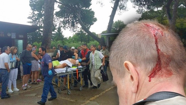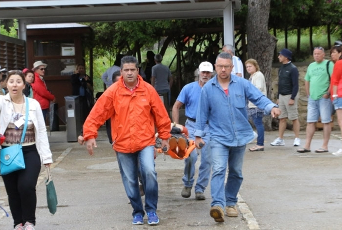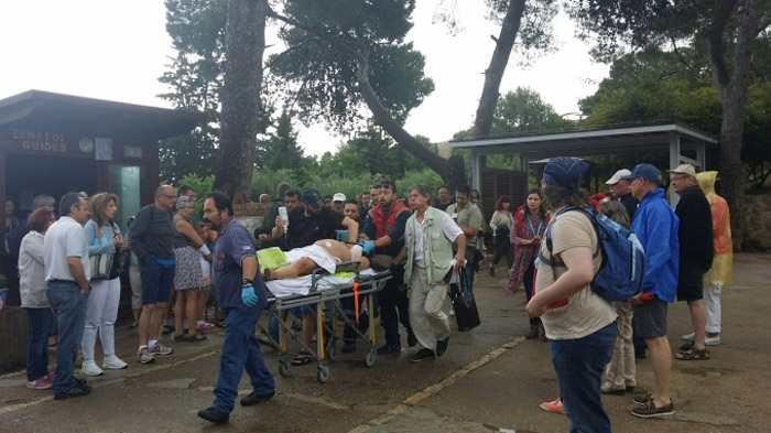 Oι τουρίστες περιηγούνταν στο αρχαιολογικό «στολίδι» της περιοχής, όταν ξαφνικά, λόγω κακοκαιρίας, ένας κεραυνός χτύπησε σε απόσταση αναπνοής από το σημείο όπου βρισκόταν το γκρουπΕπικράτησε πανικός και κάποιοι τουρίστες έπεσαν στο έδαφος για να προφυλαχθούν. Ορισμένοι εξ αυτών έχασαν τις αισθήσεις τους, ενώ μία 36χρονη υπέστη ανακοπή και μεταφέρθηκε στο Βενιζέλειο Νοσοκομείο, προκειμένου να γίνει ανάνηψη.