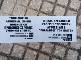 Σήμερα, Σάββατο 21 Σεπτεμβρίου 2024, ο Δυτικός Τομέας Ρουβίκωνα πραγματοποίησε παρέμβαση στην ιδιωτική κλινική Αγία Ειρήνη στο Αιγάλεω, καταγγέλλοντας τις άθλιες συνθήκες υγιεινής και περίθαλψης που επικρατούν σε αυτή. Η εν λόγω κλινική, η οποία διαφημίζει υψηλού επιπέδου υπηρεσίες, λειτουργεί με σοβαρές παραβιάσεις των βασικών υγειονομικών πρωτοκόλλων.