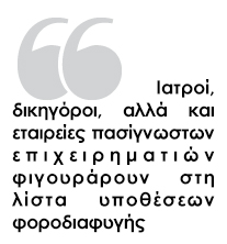 Ιατροί, δικηγόροι, αλλά και εταιρείες πασίγνωστων επιχειρηματιών φιγουράρουν στη λίστα υποθέσεων φοροδιαφυγής που πέρασε από το κόσκινο του Σώματος Δίωξης Οικονομικού Εγκλήματος τον περασμένο Μάιο.
