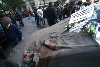 Την ώρα (5:00) που ο σύζυγός της έσπευδε να φέρει το όχημα για να την μεταφέρει στο νοσοκομείο, έπεφτε νεκρός στο πεζοδρόμιο της 3ης Σεπτεμβρίου, μετά την επίθεση τριών αγνώστων, οι οποίοι τον μαχαίρωσαν, τουλάχιστον τρεις φορές, για να του αρπάξουν μία βιντεοκάμερα. Αυτή με την οποία θα αποτύπωνε τις πρώτες στιγμές ευτυχίας με την οικογένειά του.
