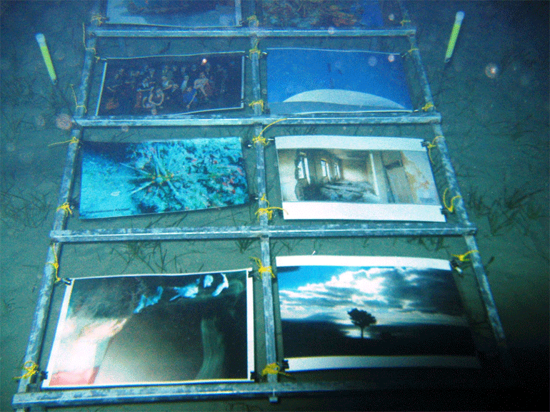 Περισσότερα από 150 άτομα έβαλαν τη μάσκα τους και βούτηξαν σε βάθος δύο μέτρων για να θαυμάσουν καλλιτεχνικές φωτογραφίες από ερασιτέχνες και μη, οι οποίοι εξέθεσαν τα έργα τους μέσα στο νερό.