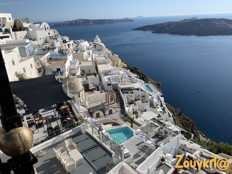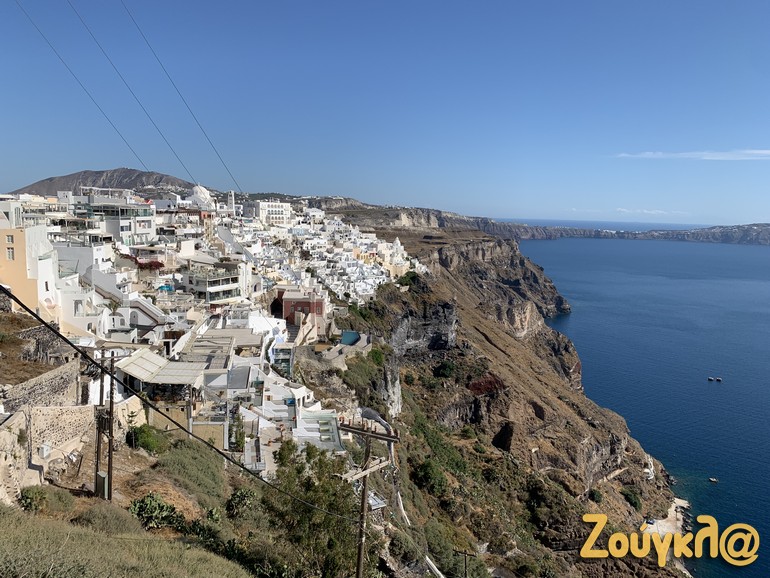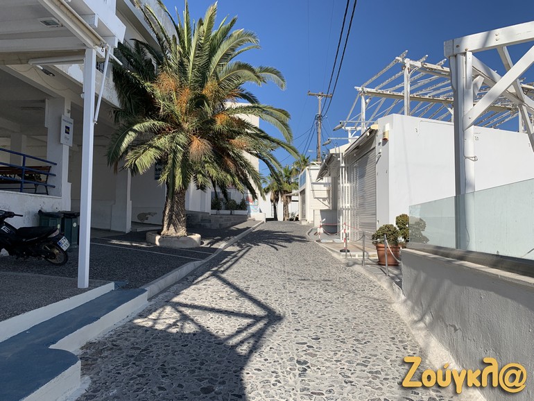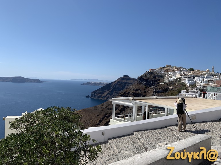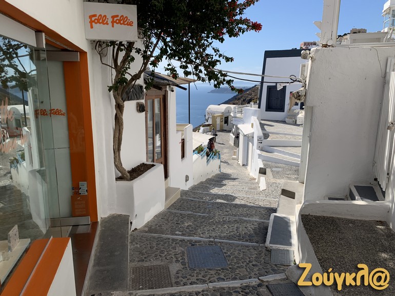 Τα Φηρά σχεδόν άδεια, με τη συντριπτική πλειοψηφία των καταστημάτων και των εστιατορίων να παραμένουν κλειστά, ελάχιστοι άνθρωποι -κι ακόμα πιο λίγοι τουρίστες- να περπατάνε στα έρημα σοκάκια, και το σκηνικό να θυμίζει σαν να πρόκειται για κατάσταση… εκκένωσης λόγω ενεργοποίησης του ηφαιστείου…